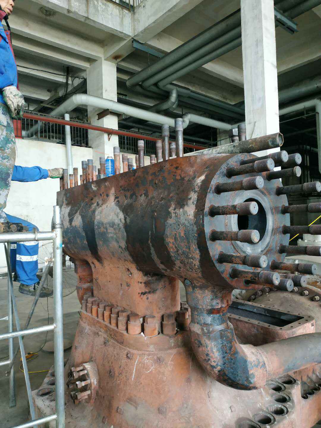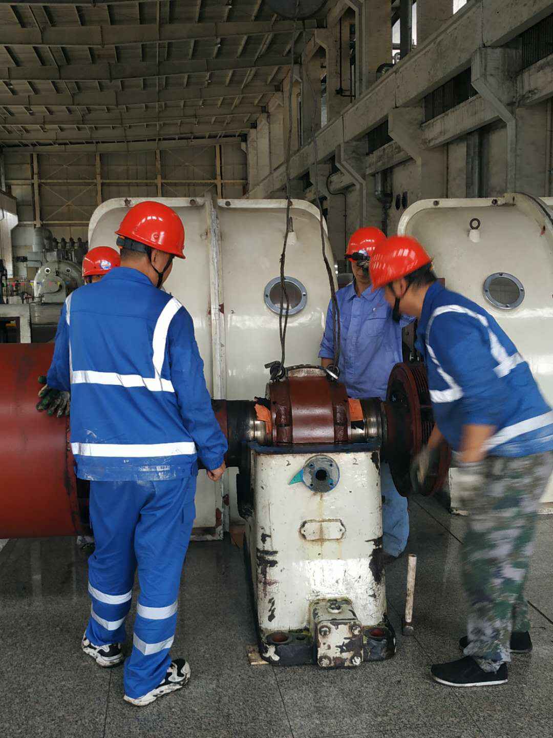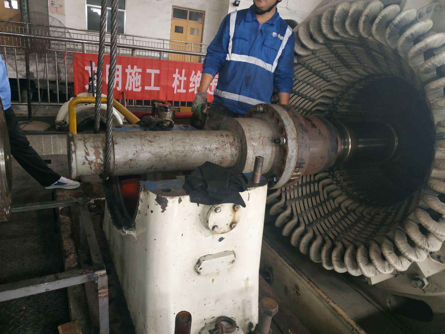 由星空官方网页版-星空online(中国)承建的山东海能化学有限责任公司机组B15MW背压式汽轮机组(原 C25抽汽凝汽式机组)大修工程现已完成凝结水泵、油站检修工作,发电机前后轴承座基础垫铁研磨工作,目前蒸汽室螺栓的拆卸工作及发电机定子与转子的清理工作陆续启动,下气缸吊隔板工作也在稳步进行中。