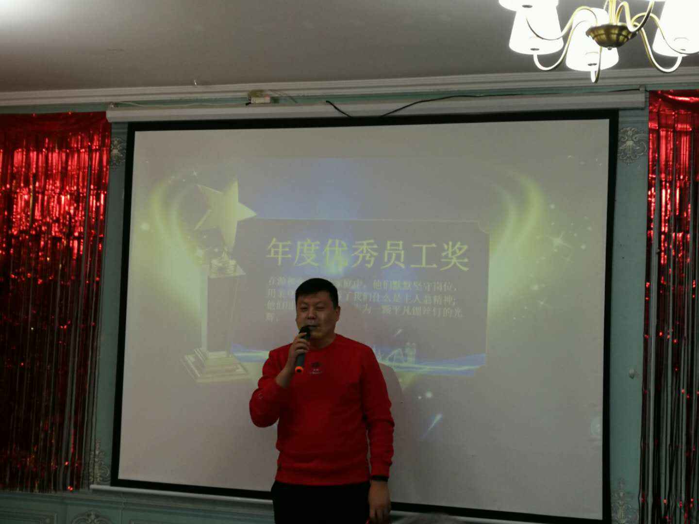 晚宴大家在共同享用美食的同时也进行了很多趣味游戏,大家默契配合,集合团队的智慧,伴随着阵阵欢笑,开展了一次又一次“斗智斗勇”,游戏的间歇,是福利环节,梅总为大家播撒红包雨并抽取幸运星。